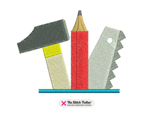Hammer, Bleistift und Säge Holzarbeitertasche