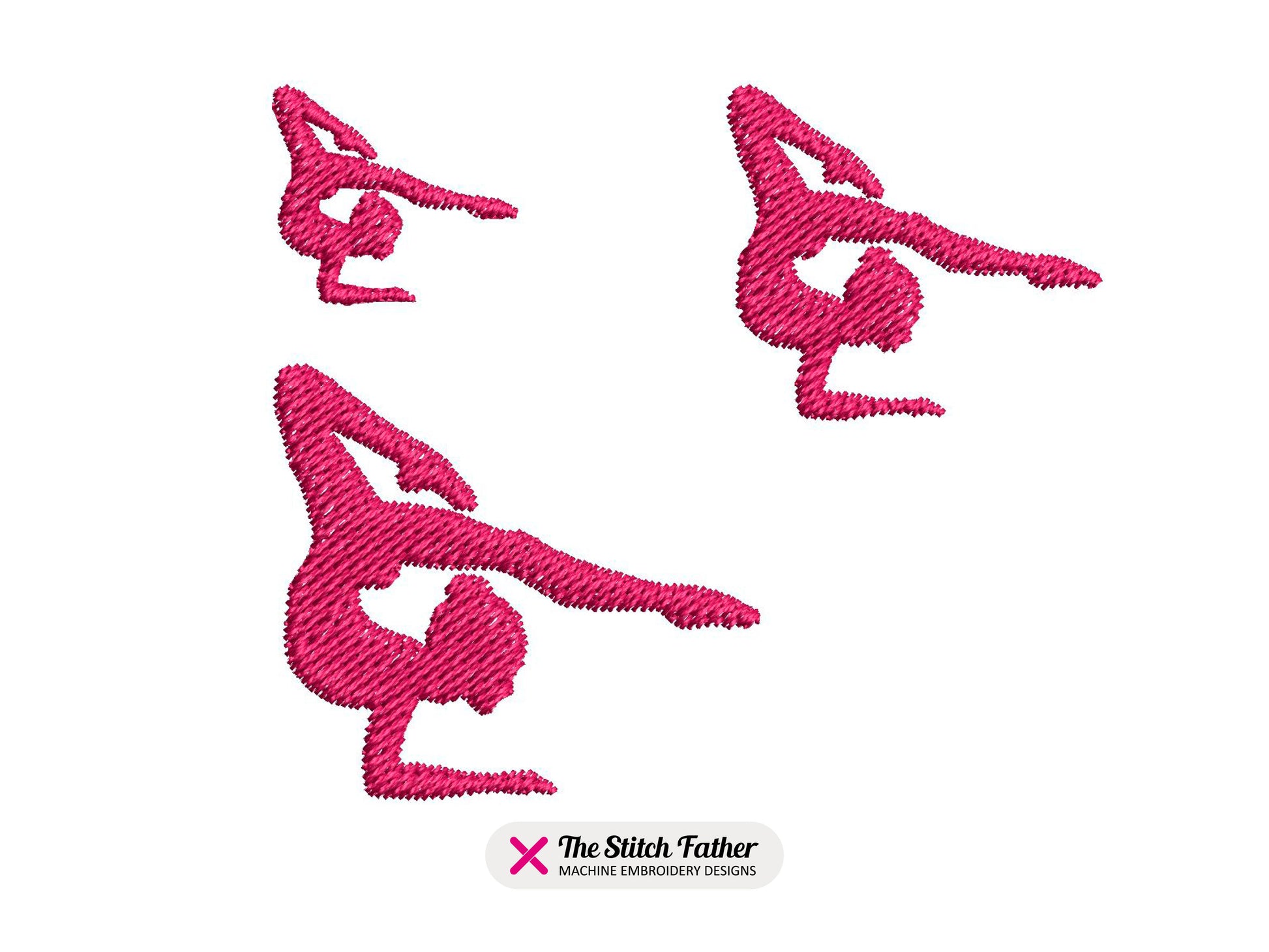*SOFORTIGER DOWNLOAD* GYMNAST Set 01 Maschinenstickmuster: vier kleine monochrome Turner-Silhouetten.