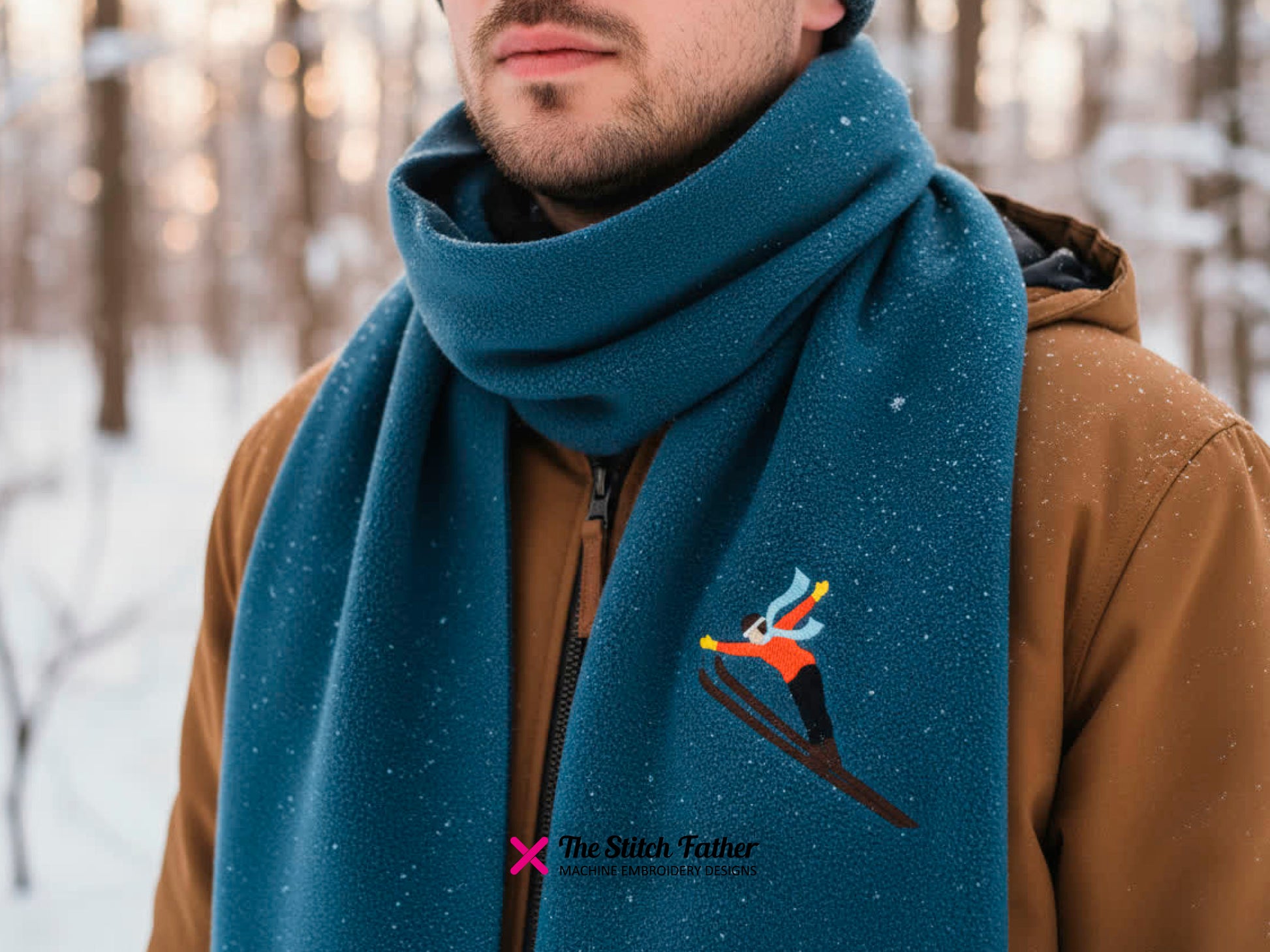 *SOFORTIGER DOWNLOAD* Maschinenstickmuster „SKIIER JUMP“. Füllstichstickerei, die einen Skispringer im Vintage-Stil darstellt, 8 Schritte. Die perfekte Wahl, wenn Sie Retro-Stil und großen Nervenkitzel lieben!