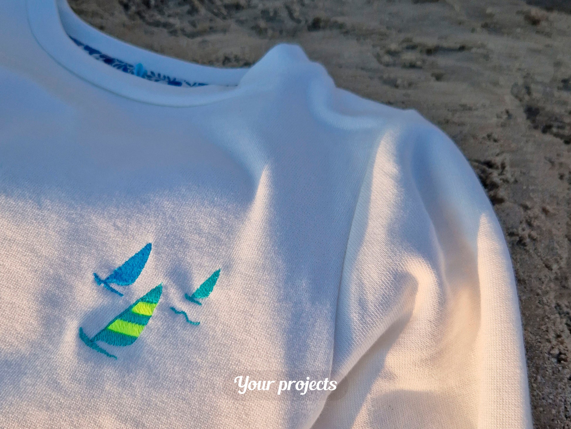 *TÉLÉCHARGEMENT INSTANTANÉ* Motif de broderie machine WINDSURFERS. Motif moderne représentant un groupe de trois véliplanchistes avec de fines vagues au point courant. Un superbe logo pour les amateurs de sports nautiques, jouez simplement avec les couleurs des voiles !