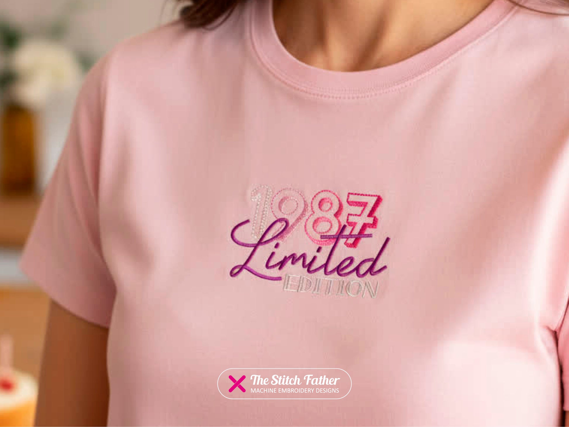 *INSTANT DOWNLOAD* “1987 LIMITED EDITION” machine embroidery design. Birthday logo of the year 1987, satin stitch and fill stitch with running stitch details, 6 steps. The white areas are open to fabric. A colorful pattern to celebrate the 80s and make unique presents for a birthday party!