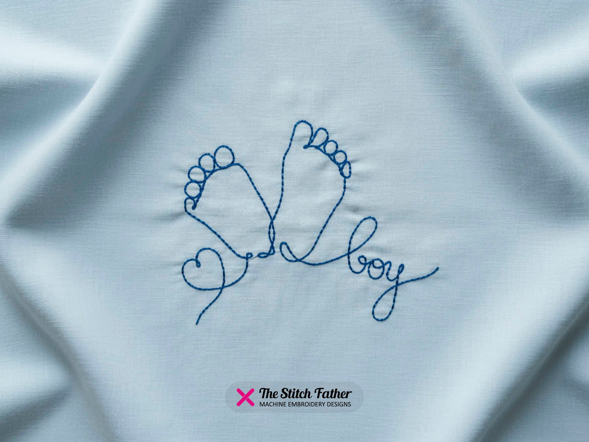 *INSTANT DOWNLOAD* BABY FEET BOY machine embroidery design. Linear embroidery representing baby feet adorned by a heart and “boy” word, one color. A delicate embroidery design to make unique gifts for a little baby boy!