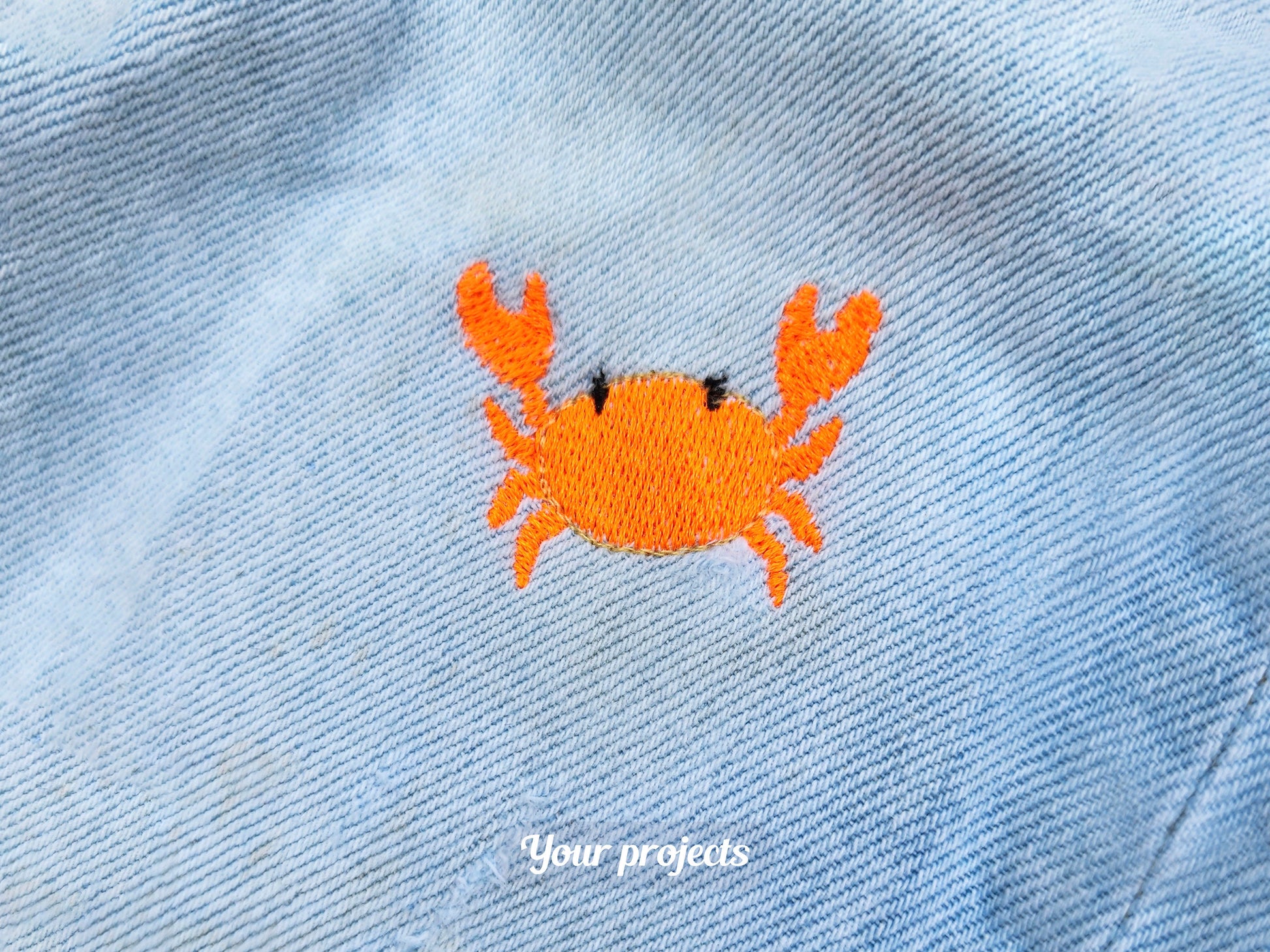 *INSTANT DOWNLOAD* CRAB 02 machine embroidery design. Small fill stitch crab, three colors. An elegant minimalist crab to add a nautical touch to your fabrics!