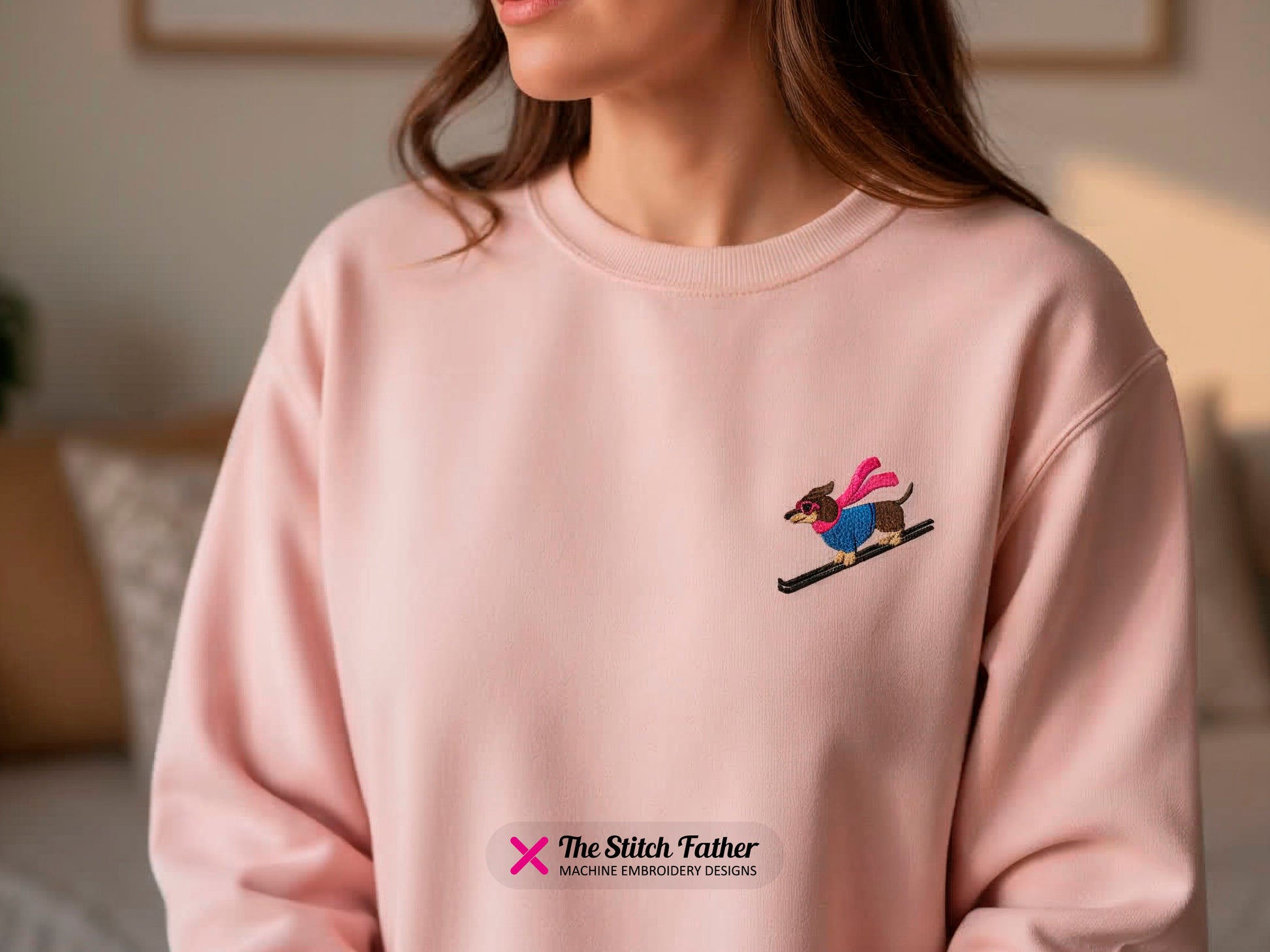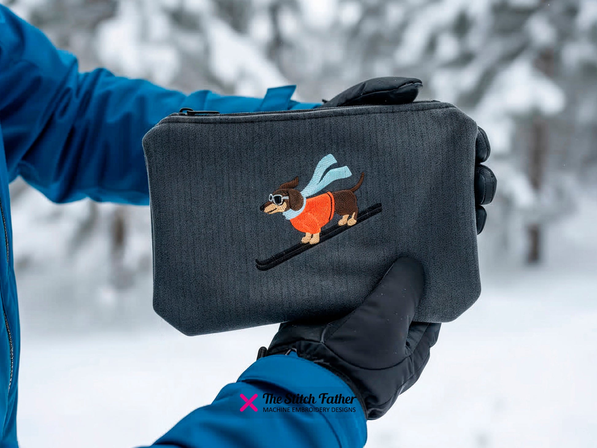 *INSTANT DOWNLOAD* “DACHSHUND DOWNHILL SKIER” machine embroidery design. Retro dachshund on skis, fill stitch with running stitch details, 7 steps. This cute retro dachshund skiing down the slopes is a must-have to personalize your winter clothing with a fun and trendy touch!