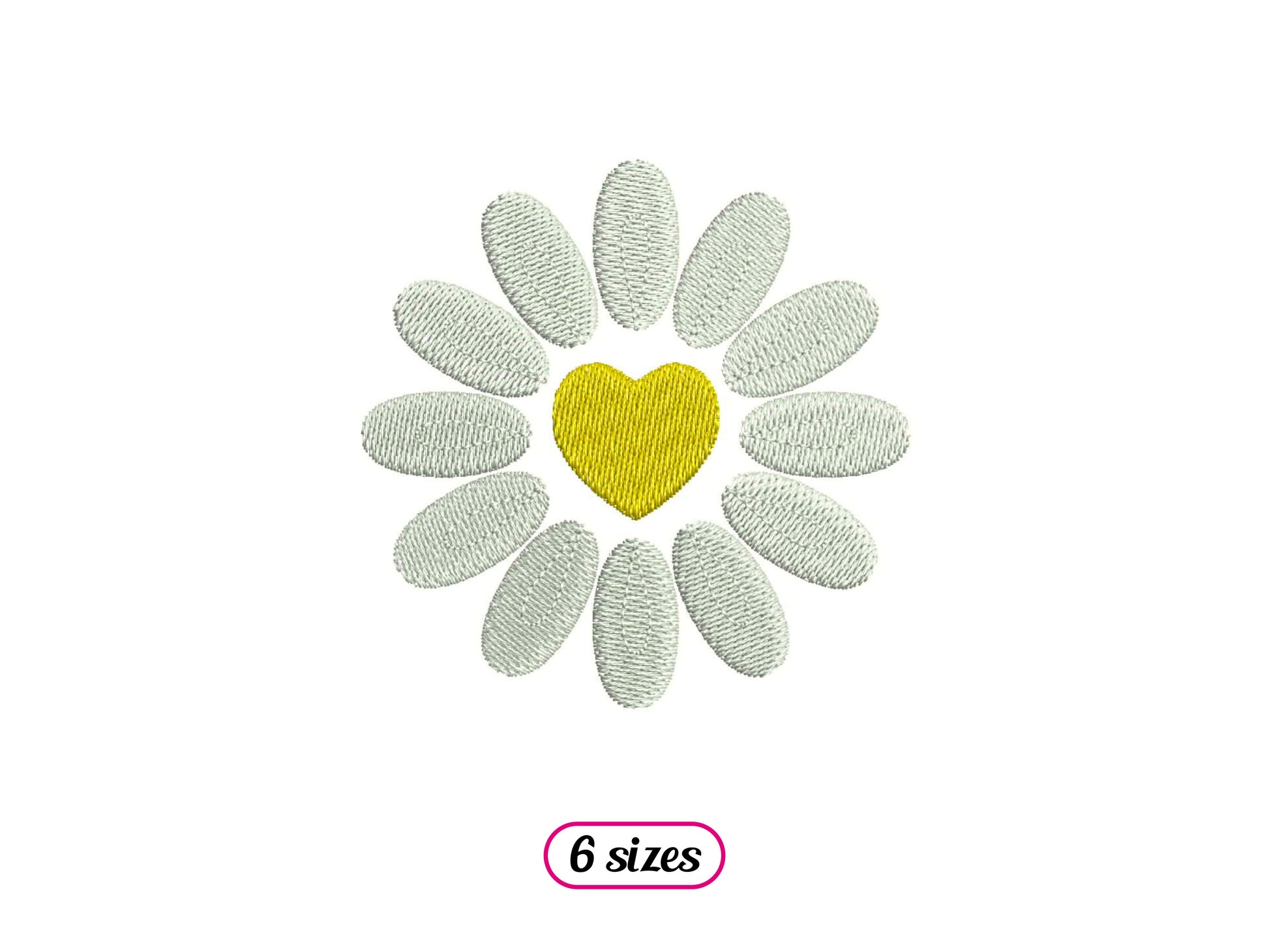 *INSTANT DOWNLOAD* DAISY HEART machine embroidery design. Fill stitch daisy pattern with heart, some running stitch lines add details on the petals. A cute floral pattern to embellish your t-shirts, pockets and more!