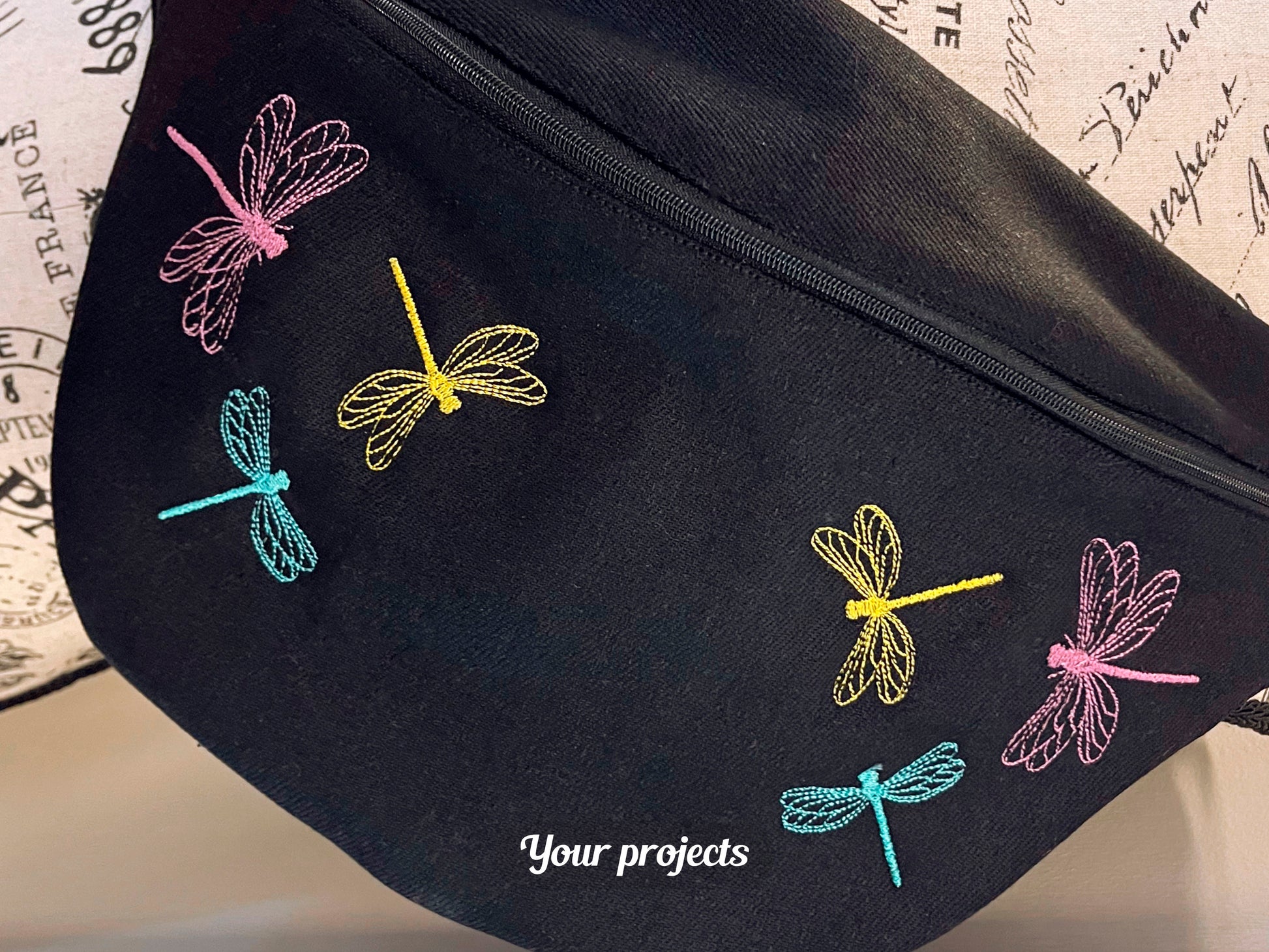 *INSTANT DOWNLOAD* DRAGONFLIES machine embroidery design. Cute group of three flying dragonflies, three colors to play with. Each silhouette has a different color. A modern, quick and easy embroidery design!