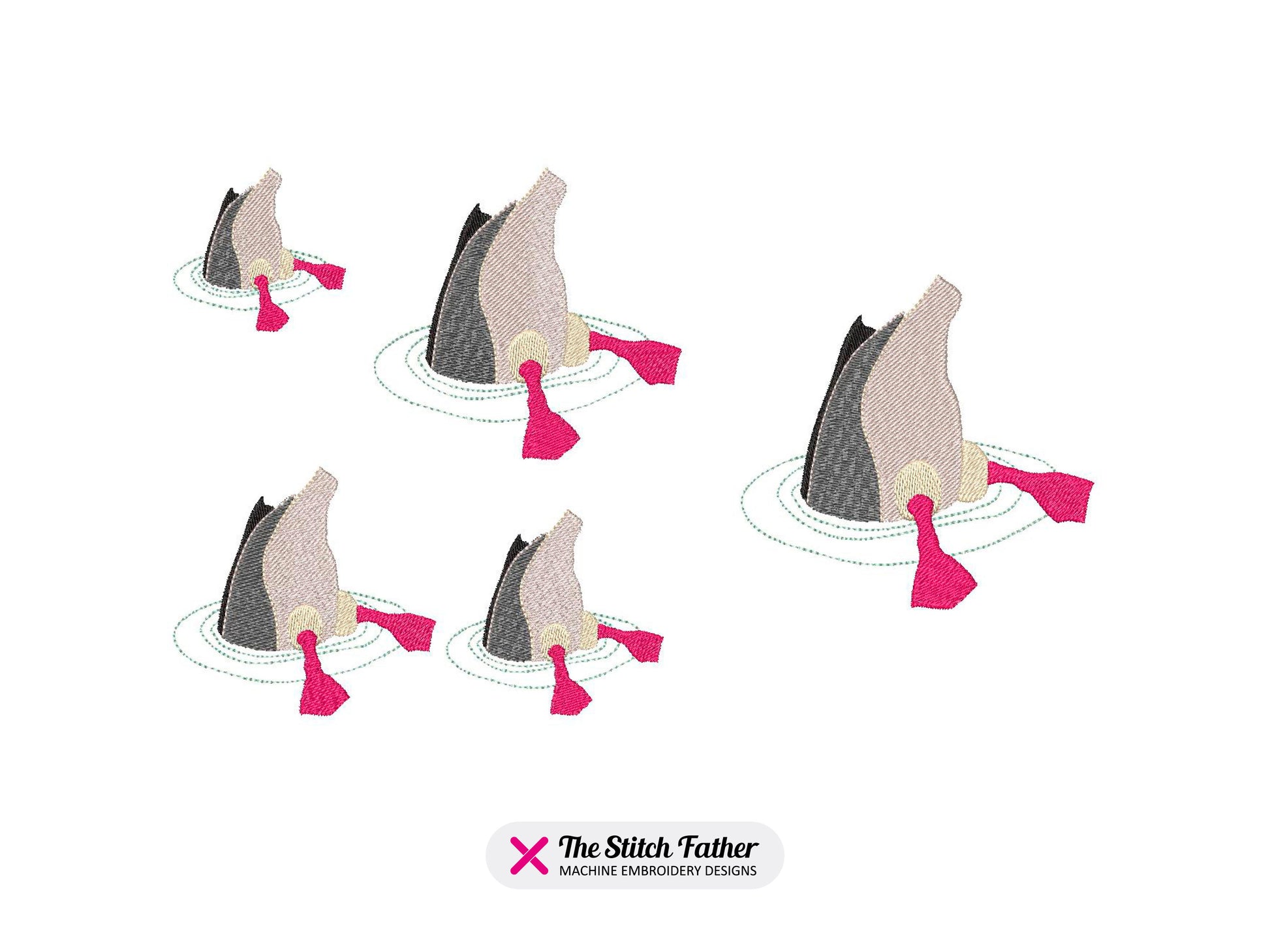 *INSTANT DOWNLOAD* “DUCK UPSIDE DOWN” machine embroidery design. Diving duck headfirst, fill stitch with running stitch details, 6 steps. The white areas are open to fabric. With this duck in a funny position, you will make unique gifts for nature lovers!