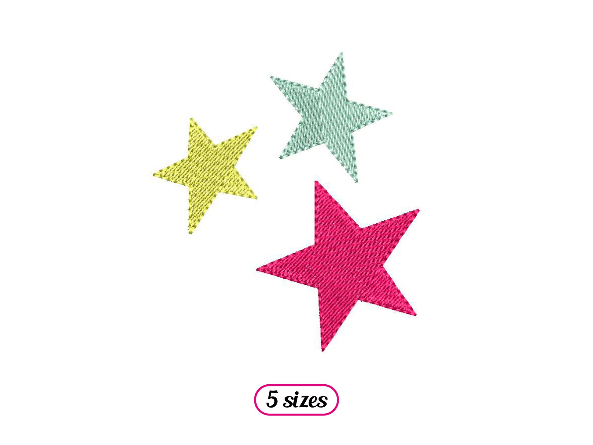 INSTANT DOWNLOAD- “STARS 02” machine embroidery design. Group of three stars of different shapes, fill stitch with running stitch outline, 3 steps. An easy and versatile embroidery to customize your fabrics!