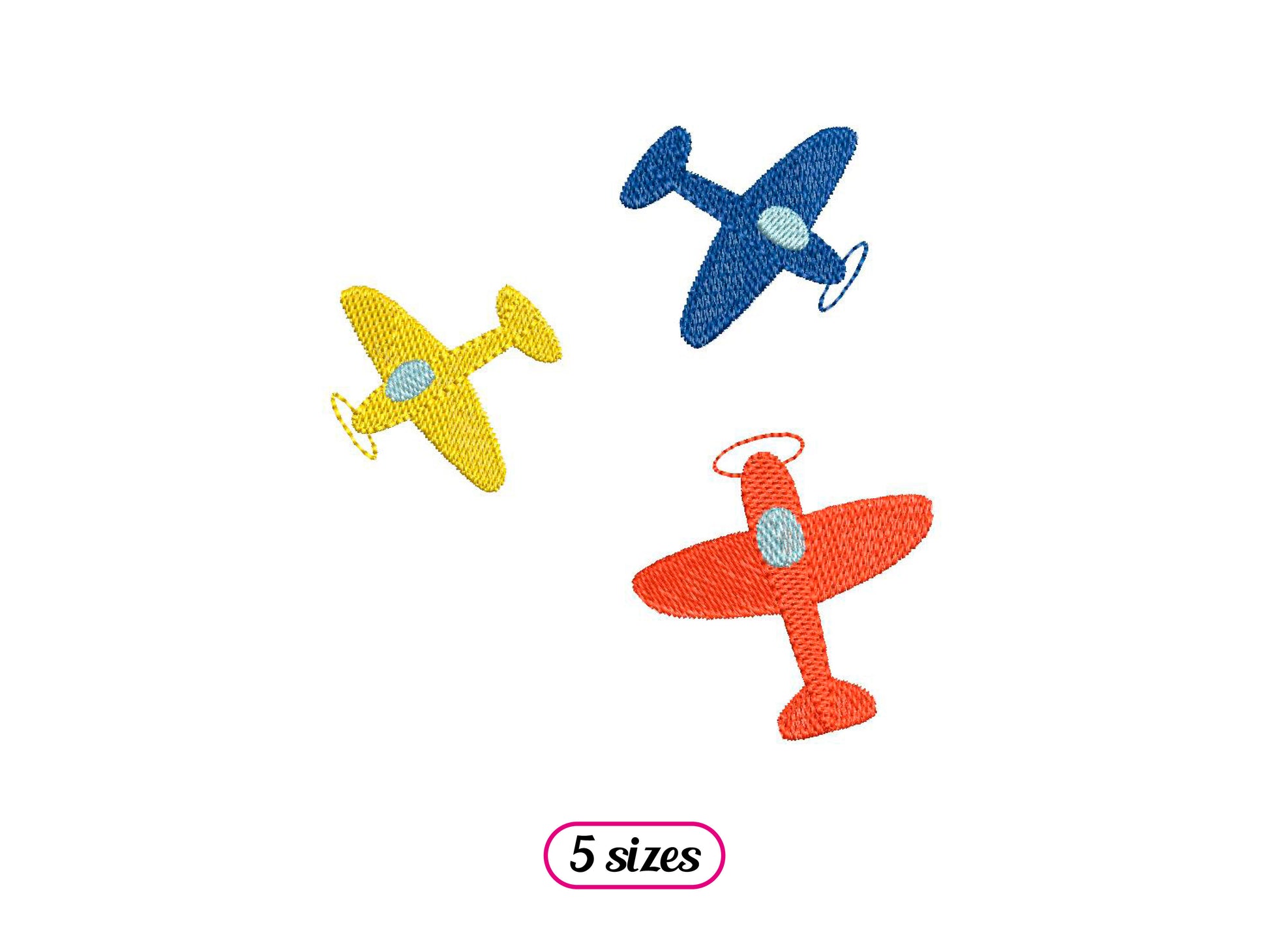 *INSTANT DOWNLOAD* PLANES machine embroidery design. Group of three fill stitch embroidery designs representing planes of different colors in flight, six steps. Play with colors and make unique personalized gifts for every aviation enthusiast!