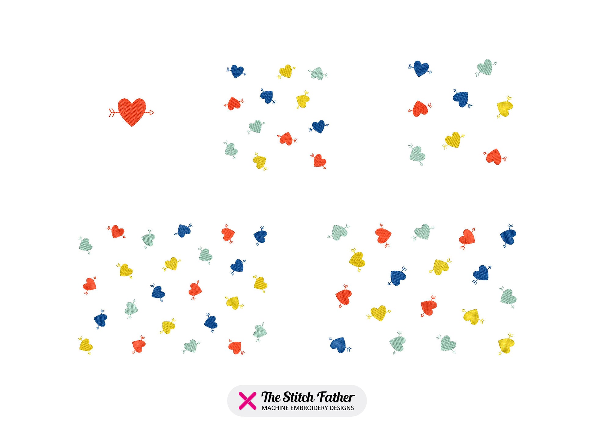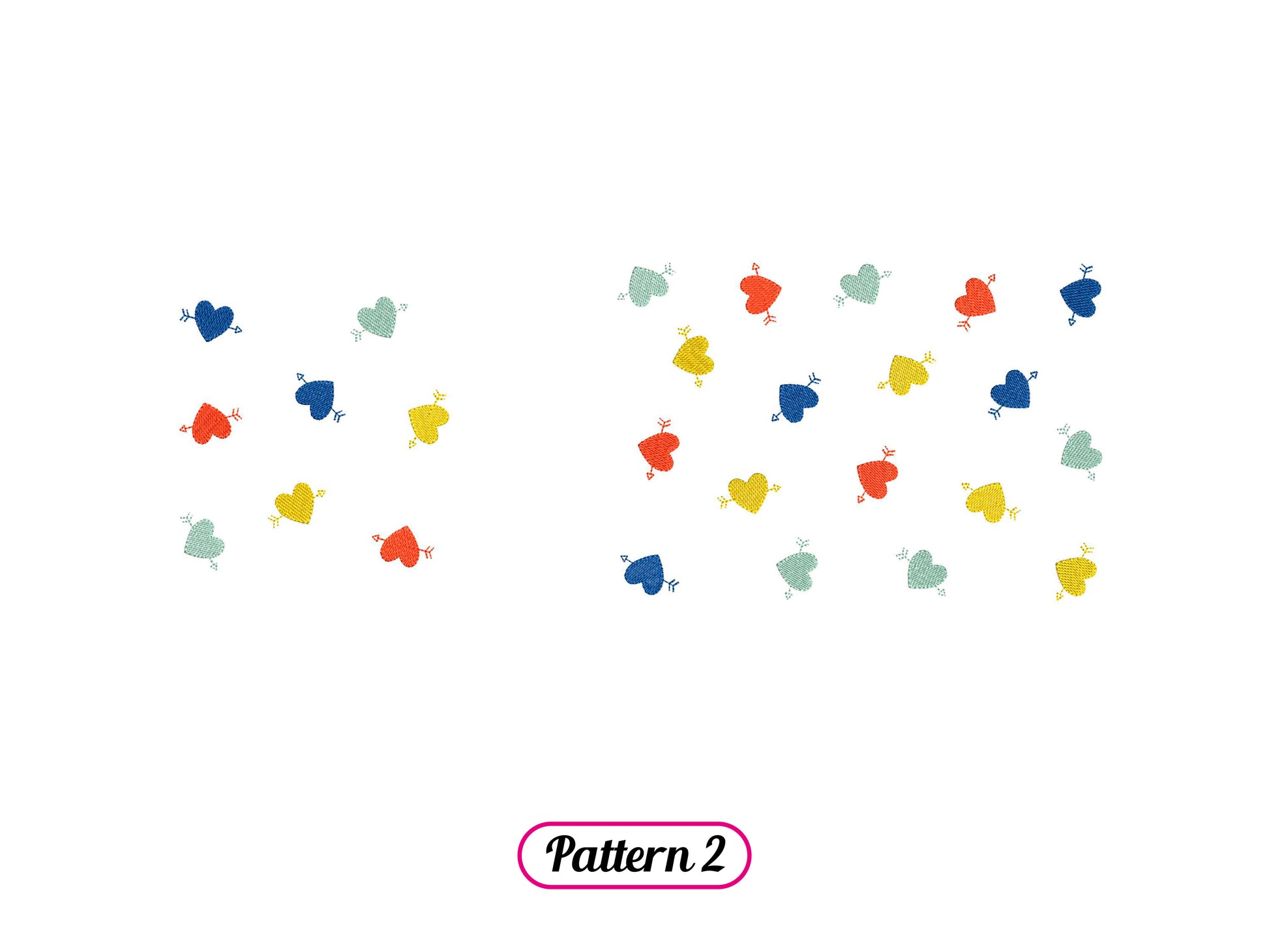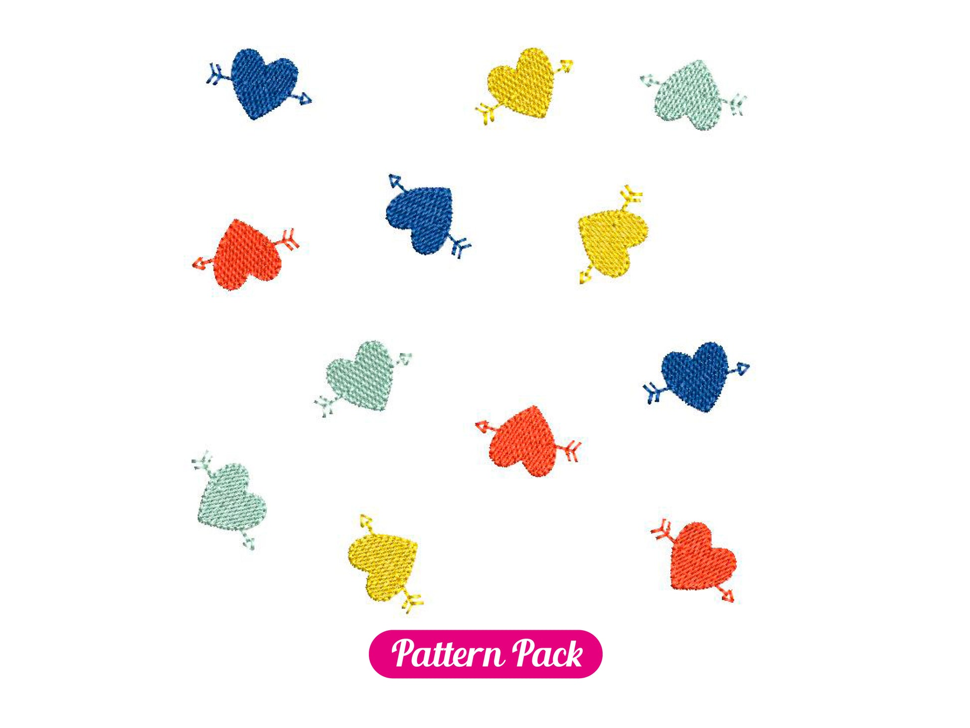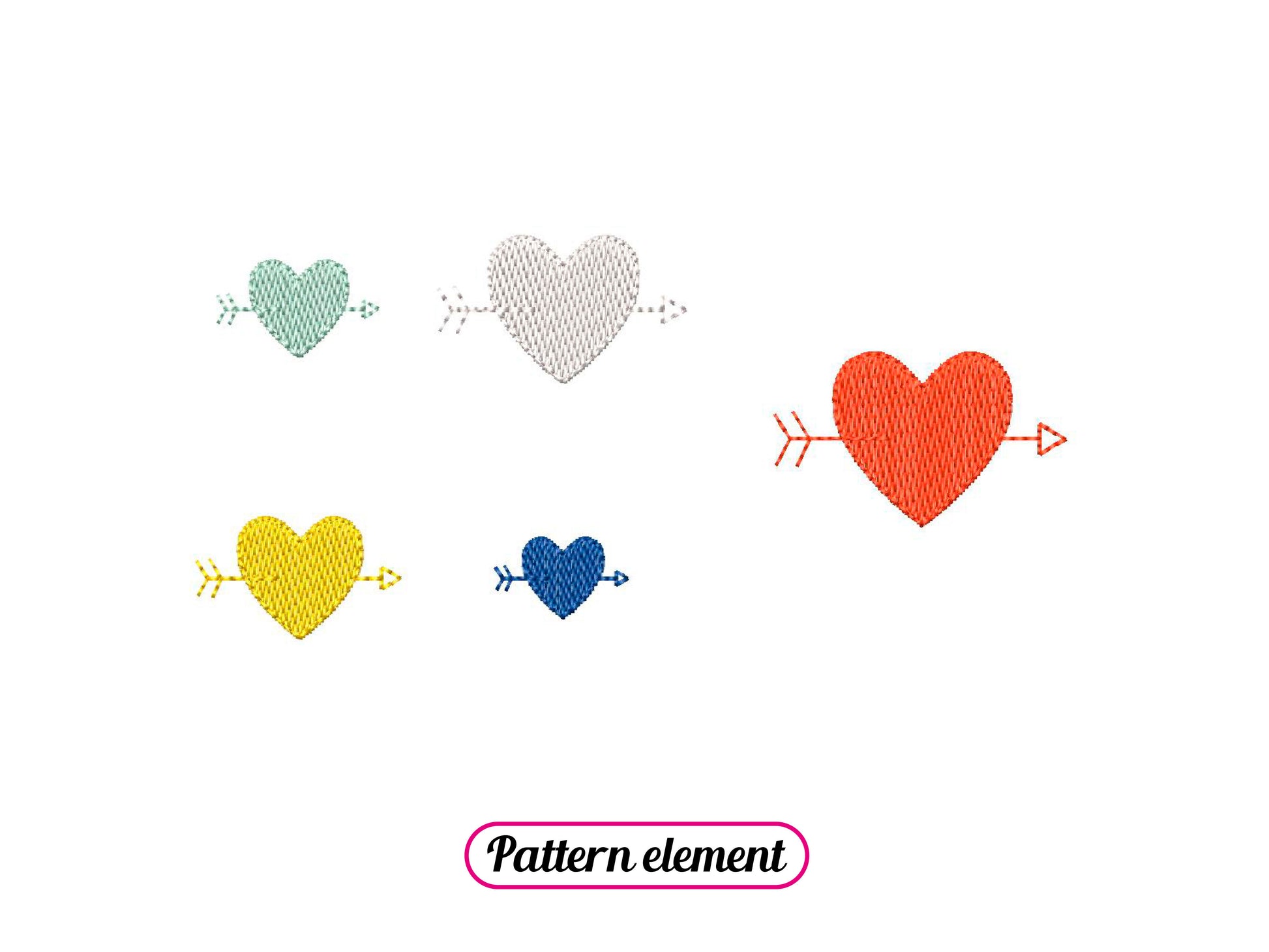*INSTANT DOWNLOAD* HEART ARROW PATTERNS machine embroidery design. Pattern pack composed of 2 heart patterns + the heart pattern element. The patterns are made of monochrome hearts with arrows, 4 steps. A versatile pack to easily cover large surfaces with the same embroidery design element and make unique projects: bag, purse, pouch, clothing and more!