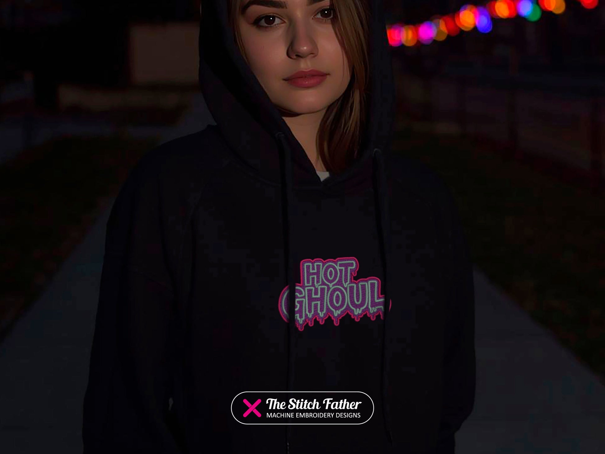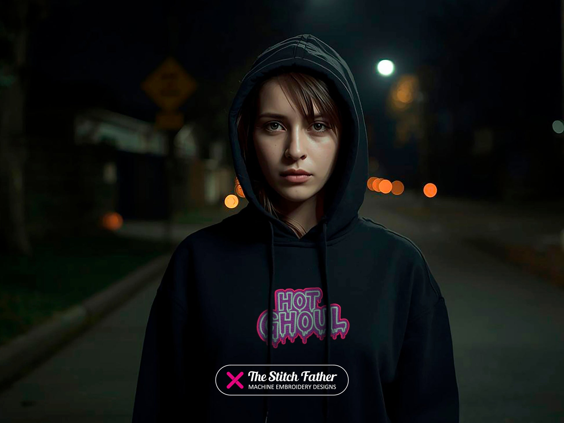 *INSTANT DOWNLOAD* “HOT GHOUL” machine embroidery design. Text logo “HOT GHOUL”, fill stitch and satin stitch, 3 steps. Add a trendy and sexy touch to your clothing or Halloween costume!