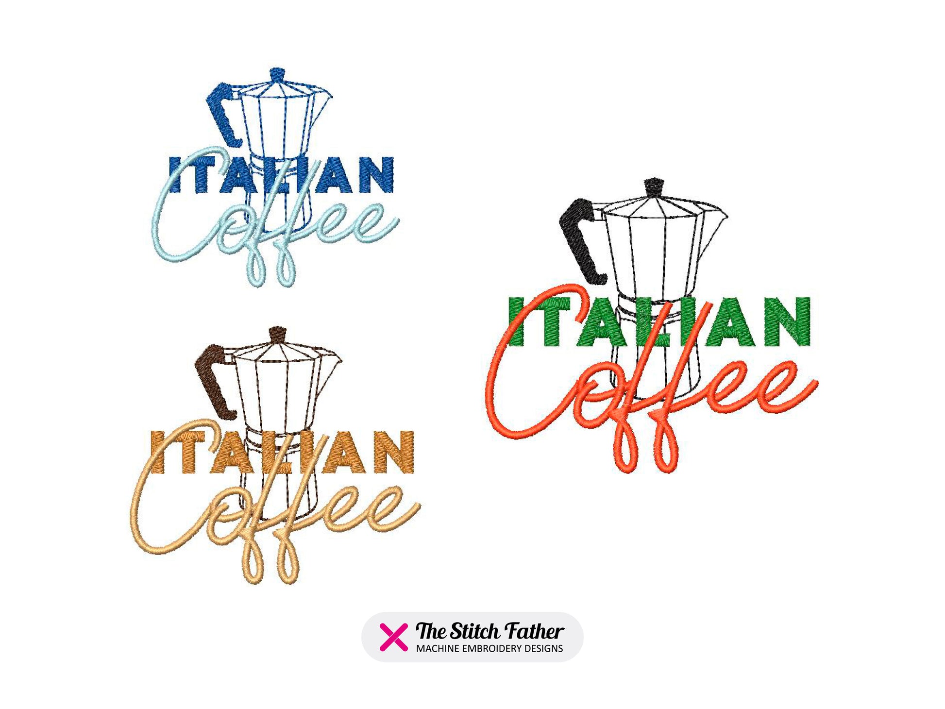 *INSTANT DOWNLOAD* ITALIAN COFFEE machine embroidery design. Running stitch Italian Coffee maker with the text “Italian Coffee”, three steps. The text is embroidered during the last steps and can be skipped, if desired. The white areas are open to fabric. The perfect embroidery for coffee lovers, let’s add a retro touch to your kitchen fabrics!