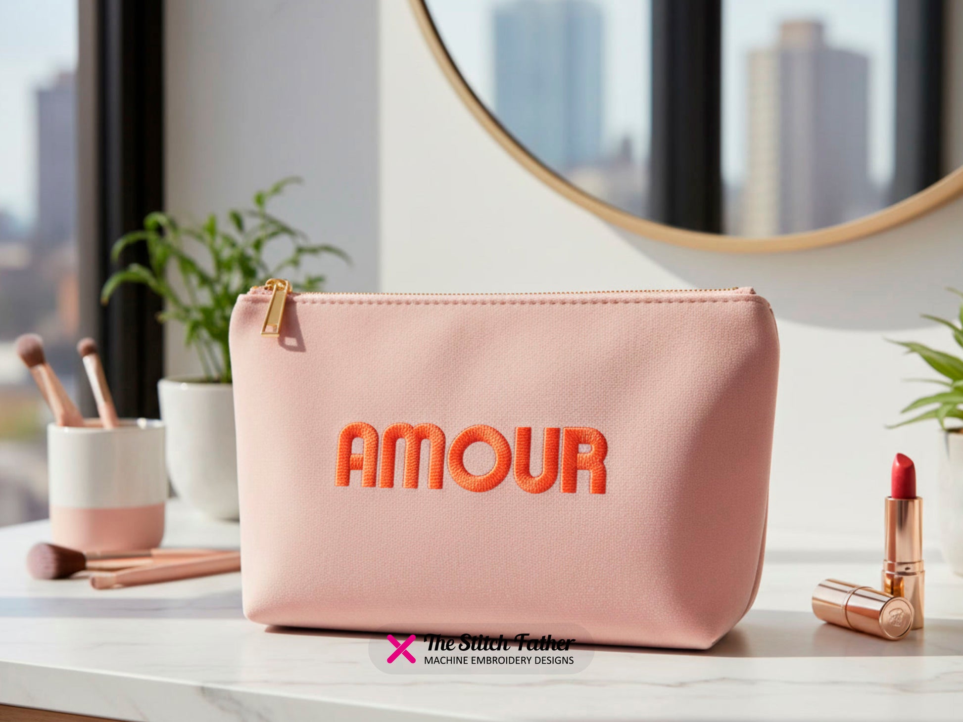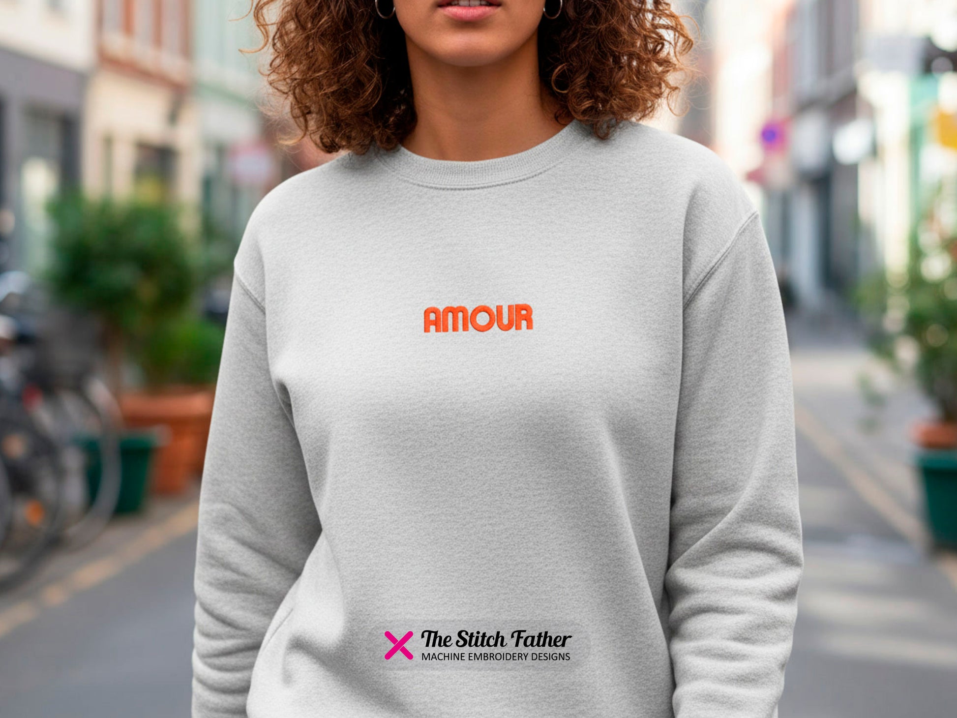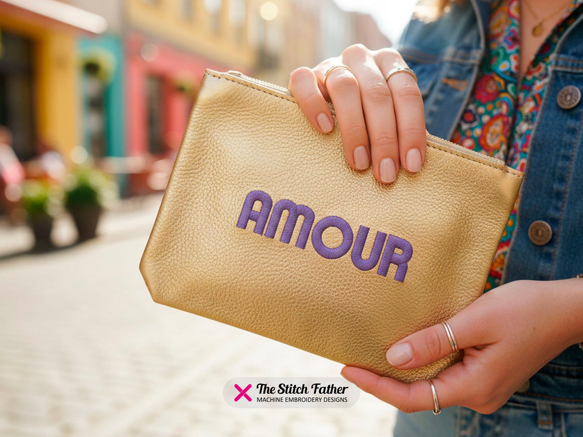 *INSTANT DOWNLOAD* “AMOUR WORD 01” machine embroidery design. Love word written in French with uppercase letters, using a rounded font, fill stitch, 1 step. This bold AMOUR embroidery brings a fresh, fashion-forward edge to your projects, ideal for creating stylish pieces with a contemporary Parisian vibe.