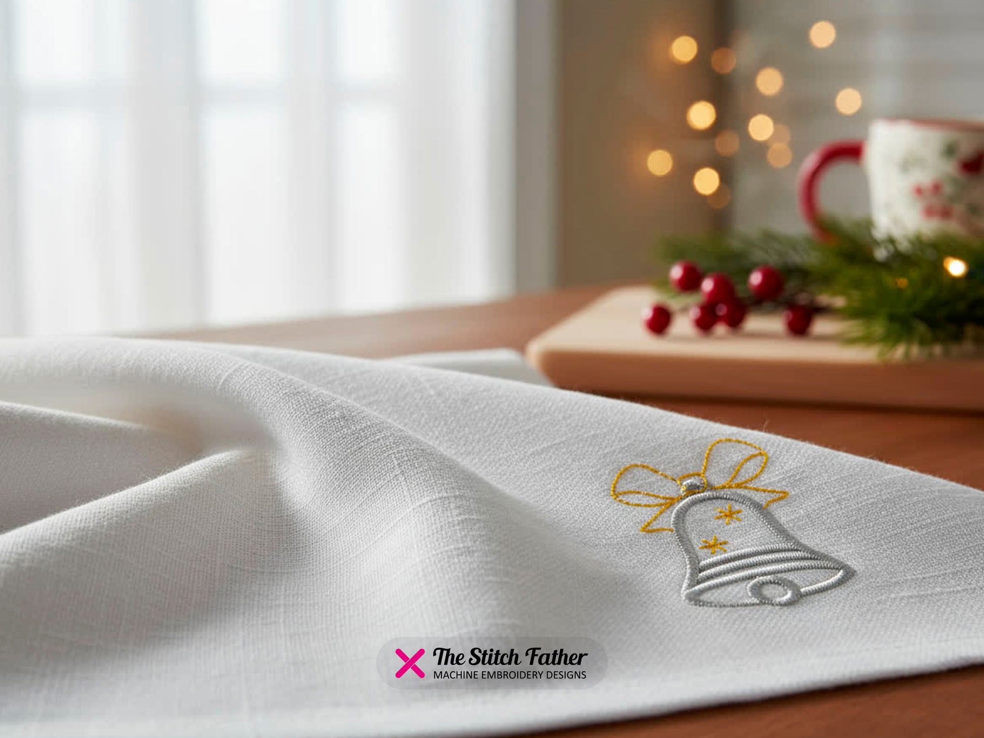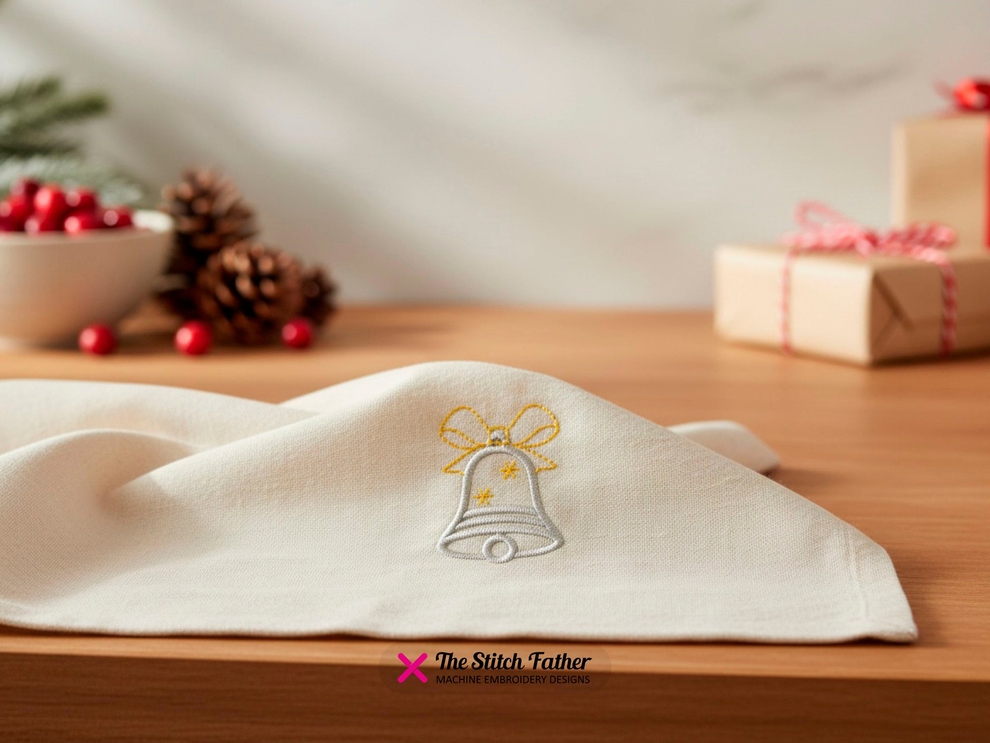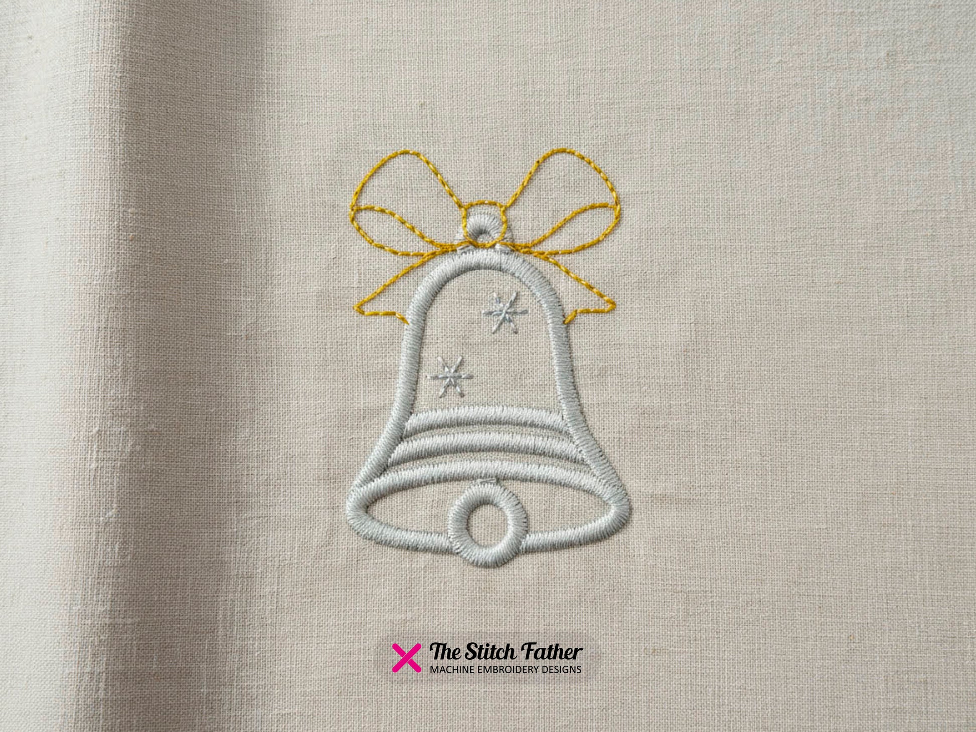 *INSTANT DOWNLOAD* “BELL ZIG ZAG” machine embroidery design. Small bell with bow represented with a linear style, satin stitch with running stitch details, 3 steps. Bring timeless elegance and festive charm to your creations with this beautiful bell embroidery design!