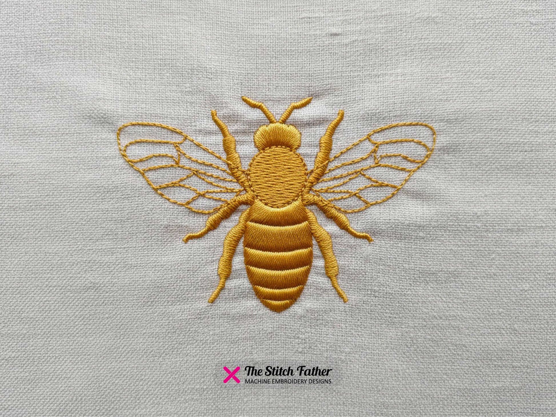 *INSTANT DOWNLOAD* BEE MONOCHROME machine embroidery design. Mini Bee Monochrome – Flying Realistic Bee - Honey Insect Flower – Animal Hive Bees Single Colour – Top View - Instant download.