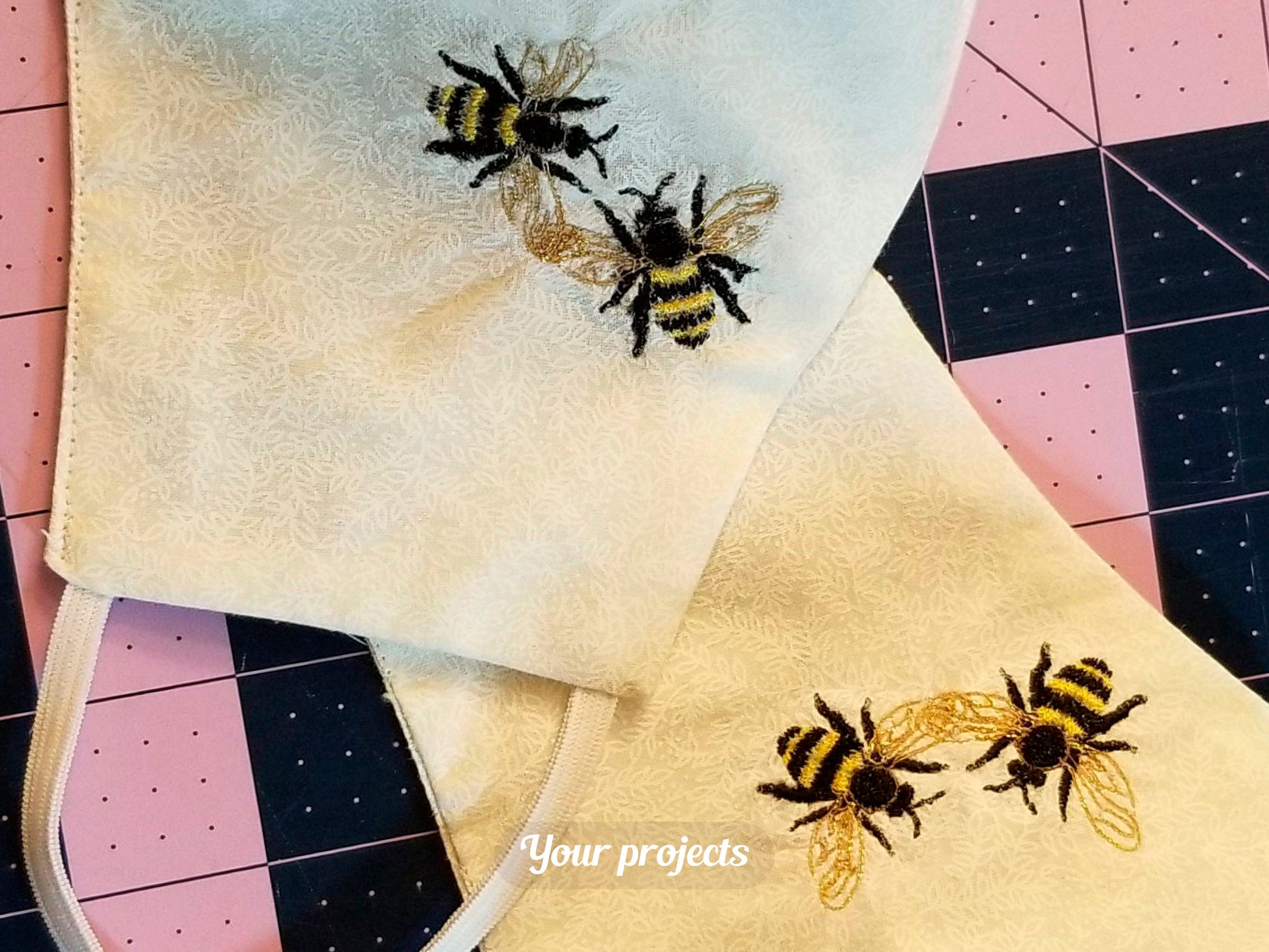 *INSTANT DOWNLOAD* BEE Set 01 machine embroidery design: realistic bees, landed and flying, side view and top view. A perfect machine embroidery set for bee lovers!
