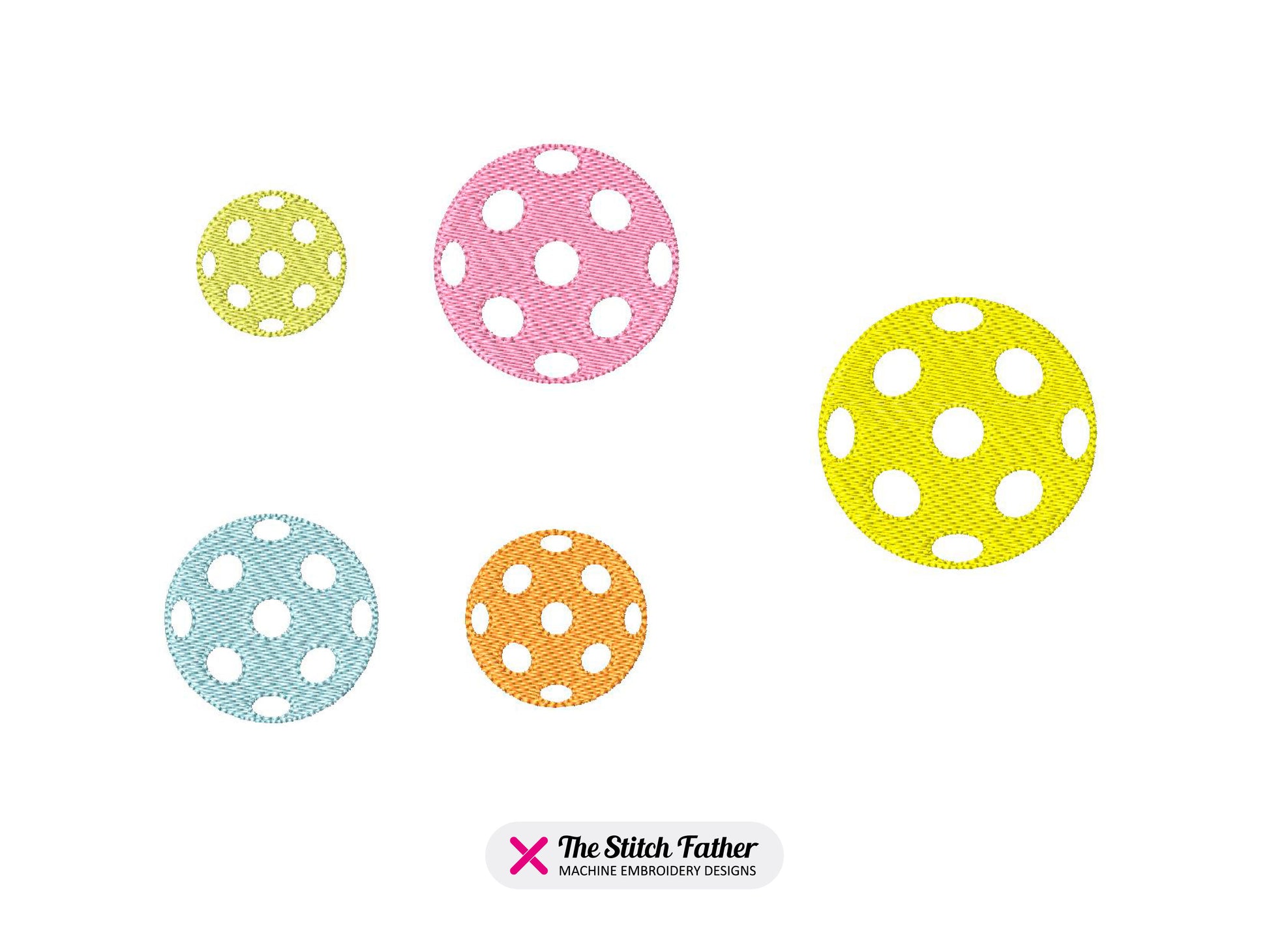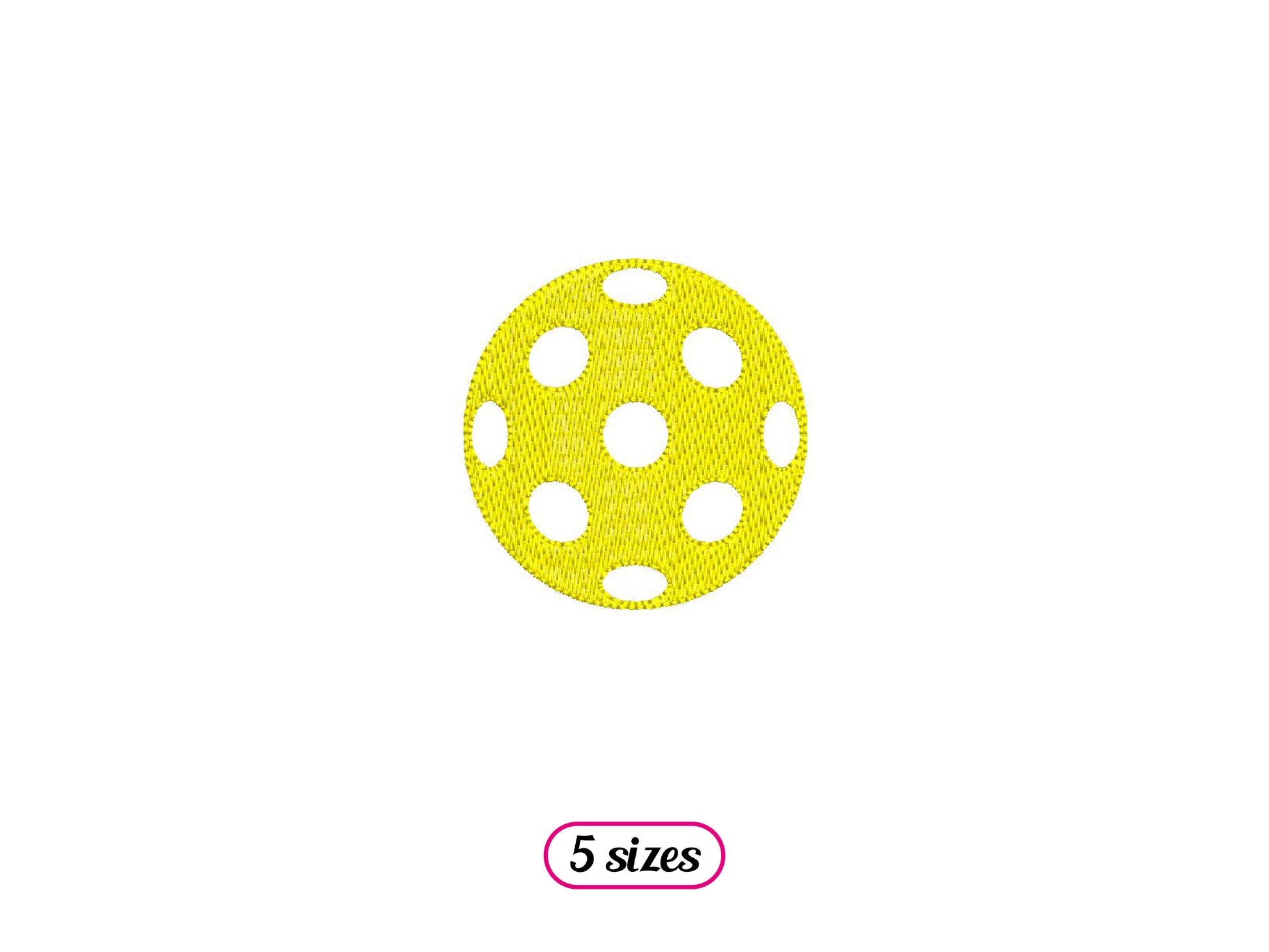 *INSTANT DOWNLOAD* PICKLEBALL BALL machine embroidery design. Fill stitch embroidery design representing a pickleball ball, one step. The white areas are open to fabric. Pick your color and make your perfect pickleball ball logo for your sport clothing!