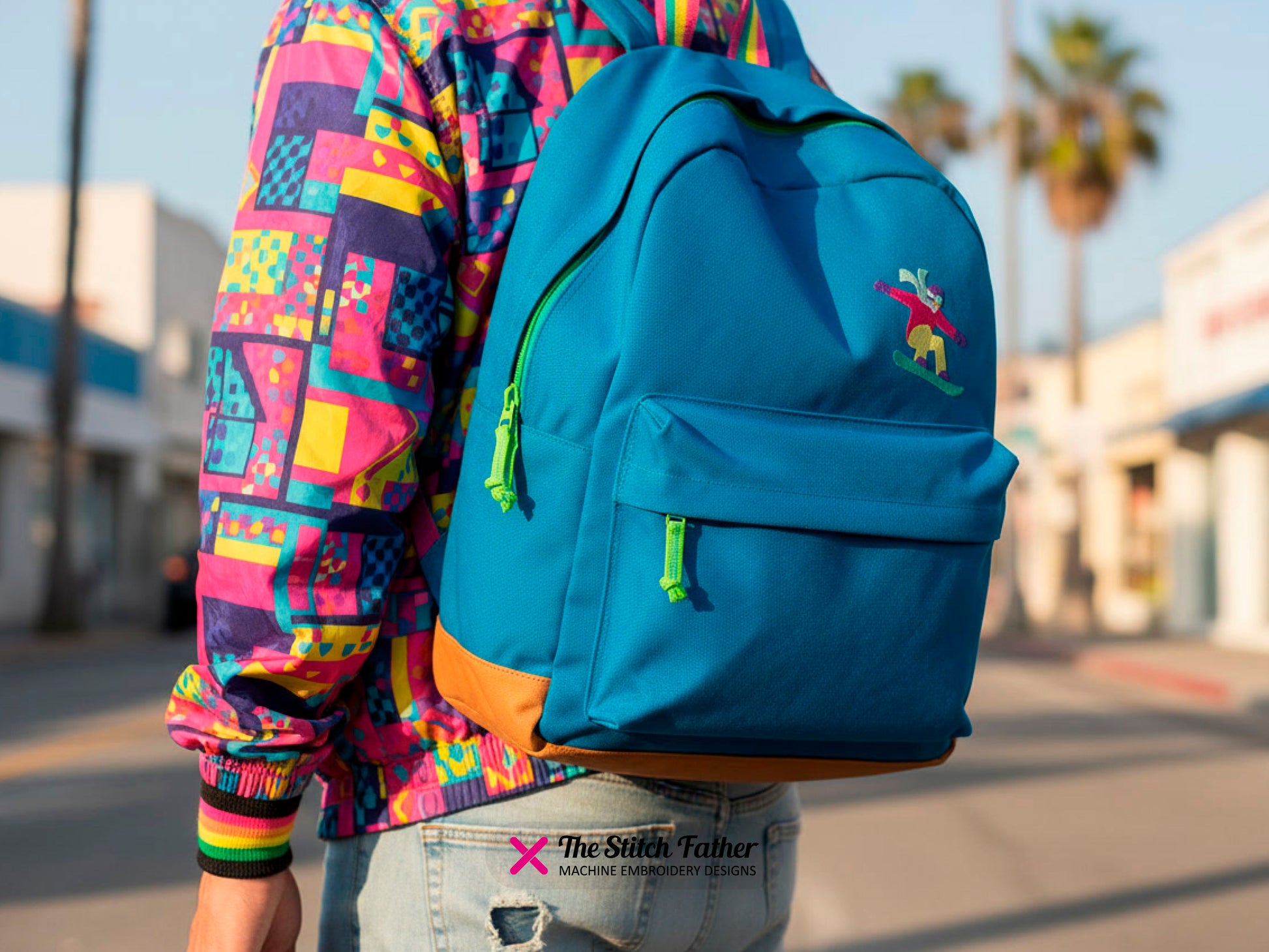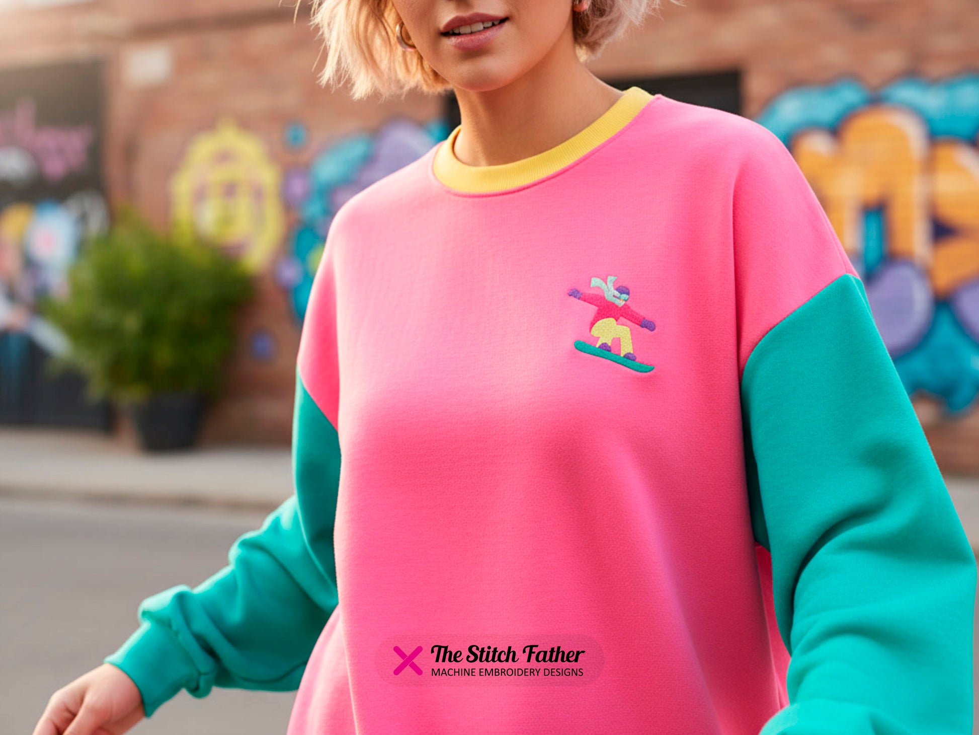 INSTANT DOWNLOAD “SNOWBOARD JUMP” machine embroidery design. Snowboarder jumping, fill stitch with running stitch details, 5 steps. This bold, energetic design is a must-have to personalize your winter projects with an adventurous, sporty, and modern vibe!