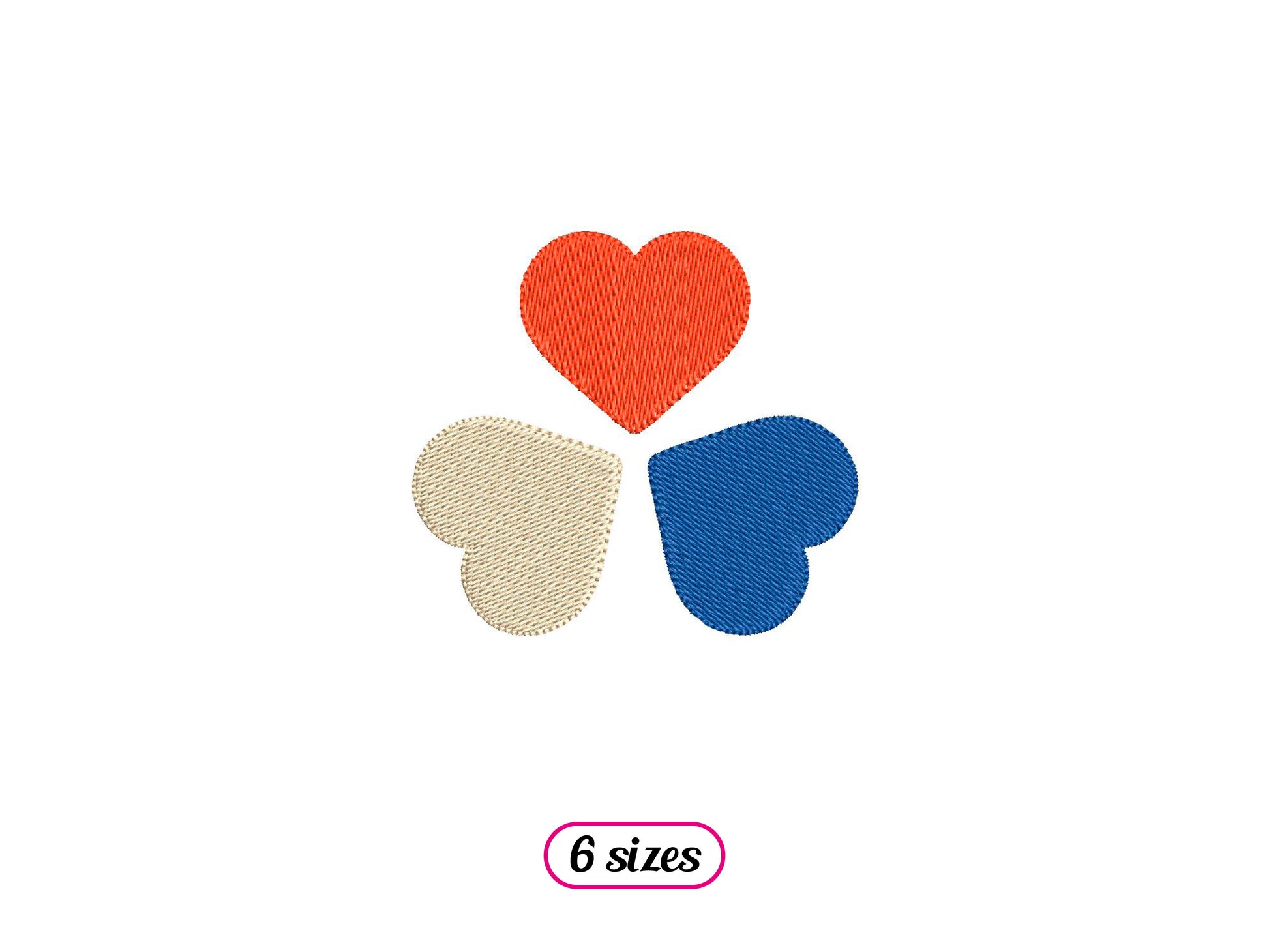 *INSTANT DOWNLOAD* HEARTS CLOVER machine embroidery design. Fill stitch tricolor clover with heart-shaped leaves, three steps. Use this trendy minimalist clover to easily customize your clothes with the colors of your national flag or your favorite colors!