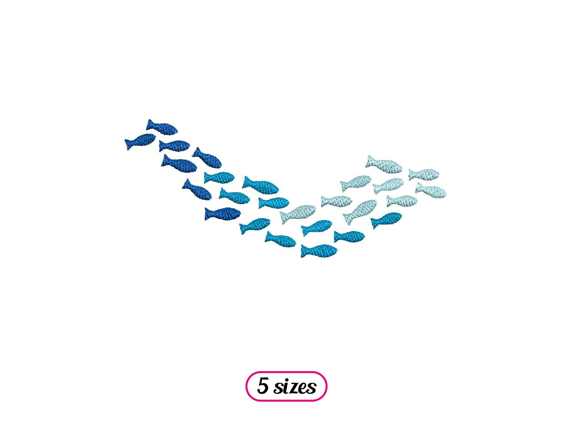 *INSTANT DOWNLOAD* FISHES GROUP WAVY machine embroidery design. Group of many tiny fish with three different shades, fill stitch, three steps. An elegant and versatile embroidery for your summer projects!